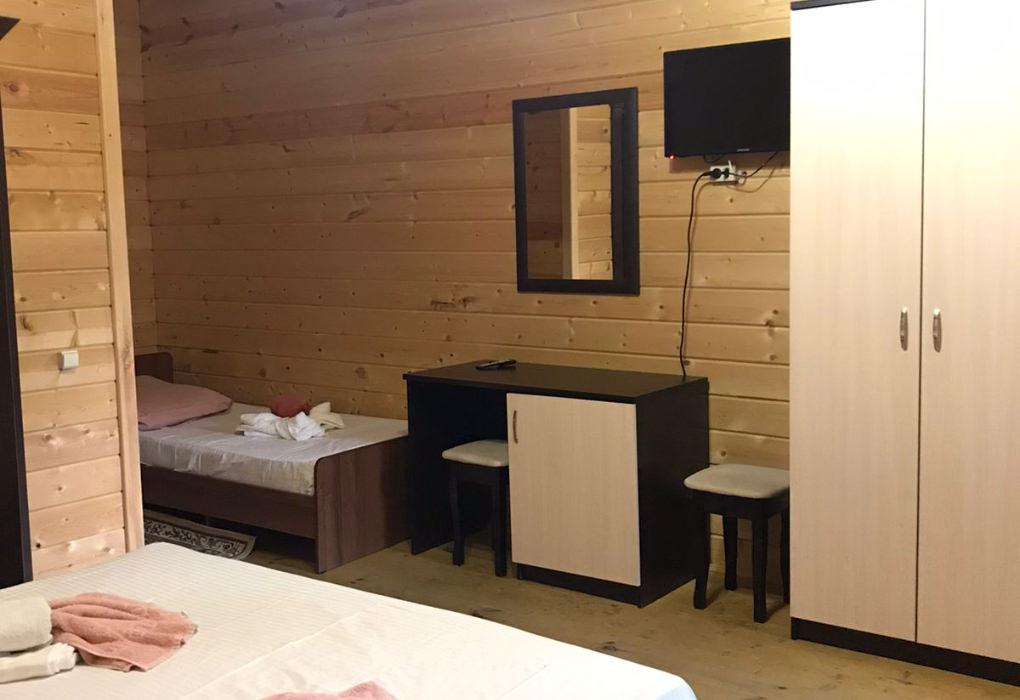 Площадь номера - 21 кв.м. 1 комната. 3 осн. места. В номере: телевизор; холодильник; душ; туалет; 2-спальная кровать; 1-спальная кровать; кондиционер в каждой комнате. 1 доп. место: